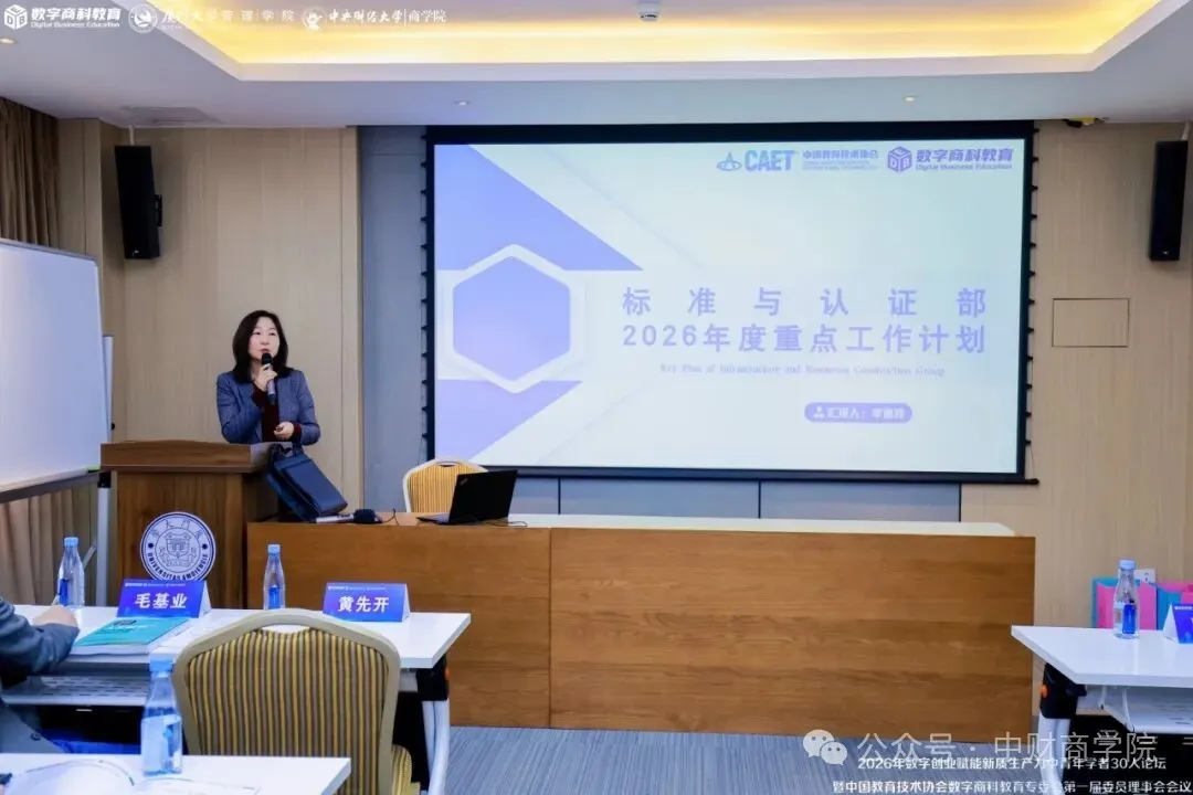 The Secretariat subsequently introduced the positioning, responsibilities, and operational mechanisms of the committee’s eight functional departments, each of which reported its annual work plan. The Academic Research Department plans to launch 3–5 key research projects and 15–20 general research projects, building a systematic research framework for digital business studies. The collaborative course “Teaching and Research in Economics and Management Disciplines in the AI Era” will be jointly developed to form a learning community for faculty members. The Digital Business Smart Cloud Platform will soon be launched, providing services including learning programs, training sessions, and live lectures. Meanwhile, the Standards and Accreditation Department will formulate Chinese Business School Accreditation Standards to promote educational quality upgrades. Additional initiatives will also be implemented, including the three-stage strategy for international cooperation, faculty training programs for vocational education, the “100 Entrepreneurs in Residence” program, and the “Promoting the Long March Spirit” nationwide themed activity involving hundreds of universities and tens of thousands of participants, aiming to build a comprehensive ecosystem integrating industry, academia, research, and application.