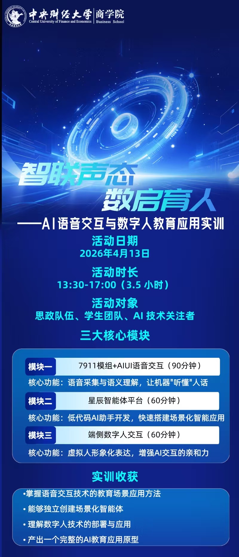 School News为积极响应人工智能赋能教育的发展趋势,推动前沿AI技术与教育教学、思政建设深度融合,提升思政队伍、学生团队的创新应用能力,一场聚焦AI语音交互与数字人教育应用的实训活动即将启幕。本次活动依托讯飞平台优质教育资源,助力参与者解锁AI+教育创新新路径。本次实训活动面向学院思政工作者、学生团队及AI技术关注者开放报名。活动打破传统技术培训的枯燥模式,以“实操赋能、场景落地”为核心,聚焦AI语音交互、智能助手、数...