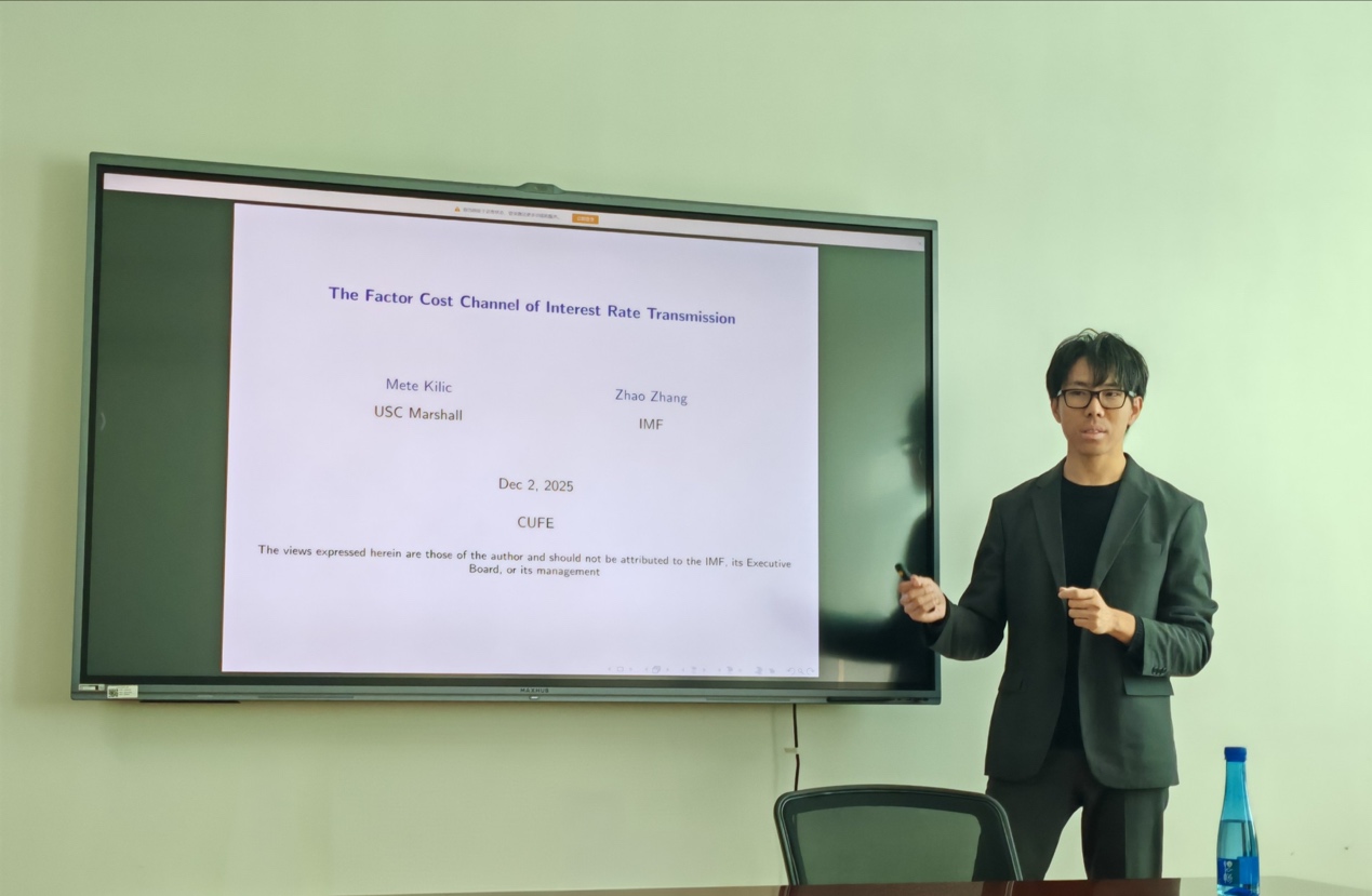 School News2025年12月2日(周二)上午10点,中央财经大学商学院在学院南路校区主教学楼615会议室顺利举办了2025年第33期卓越学术讲坛。本次讲座特邀国际货币基金组织(IMF)经济学家张诏博士担任主讲嘉宾。商学院的教师、博士生、硕士生以及其他高校的学者共计10余人参加了此次学术活动。讲座由中央财经大学商学院助理教授高震男主持。活动开始前,高震男助理教授向与会者介绍了张诏博士的学术与政策背景。张诏博士现任国际货币基金组织经...