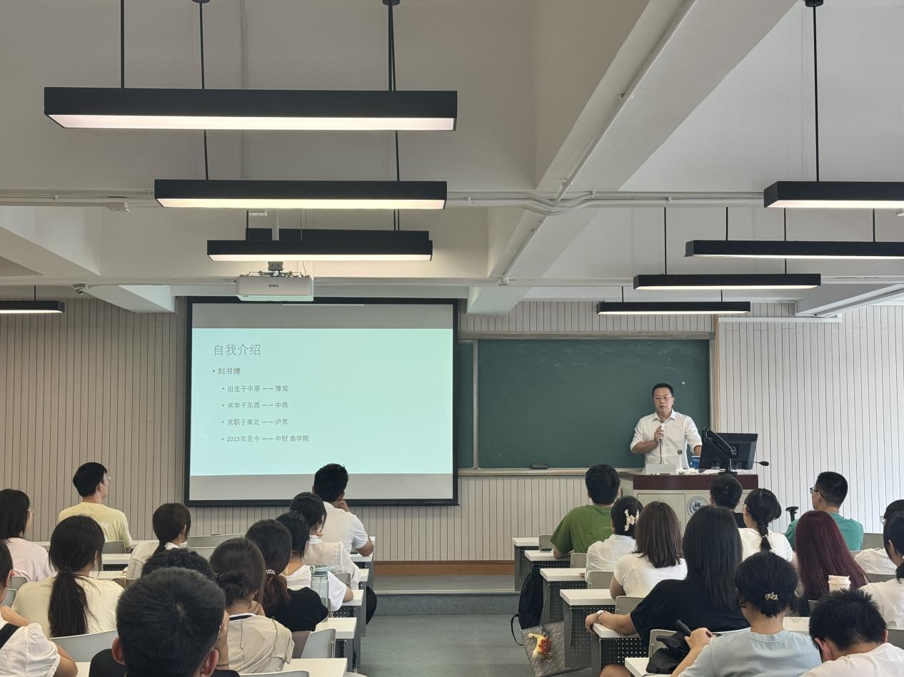 9月4日下午,商学院品牌活动“师说”系列讲座2025年秋季学期首期在学院南路主教503教室顺利举行。本期讲座特邀商学院战略系主任刘书博副教授为2025级本科生作题为“升级——大学阶段的成长方式与学习指南”的讲座,为本科新生讲解大学阶段“升级”的方法。讲座由王惠婷老师主持,新生班主任及全体2025级本科生出席。
