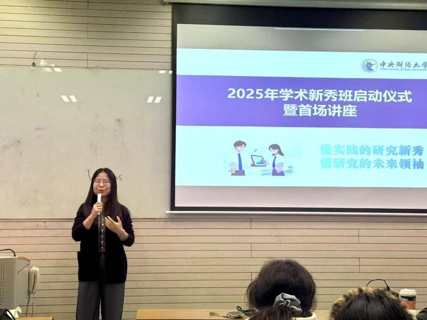 2025年10月21日晚,中央财经大学商学院2025年“学术新秀班”启动仪式暨首场讲座在学院南路校区主教206顺利举行。本次活动由商学院组织与人力资源管理系嵇月婷副教授主持,商学院副院长顾雷雷出席并致辞,随后,市场营销系孙鲁平教授作题为《学术论文写作与发表——Rookie进阶指南》的首场专题讲座,现场气氛热烈,学术氛围浓厚。