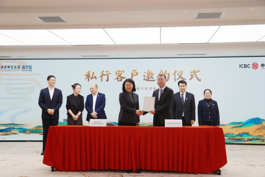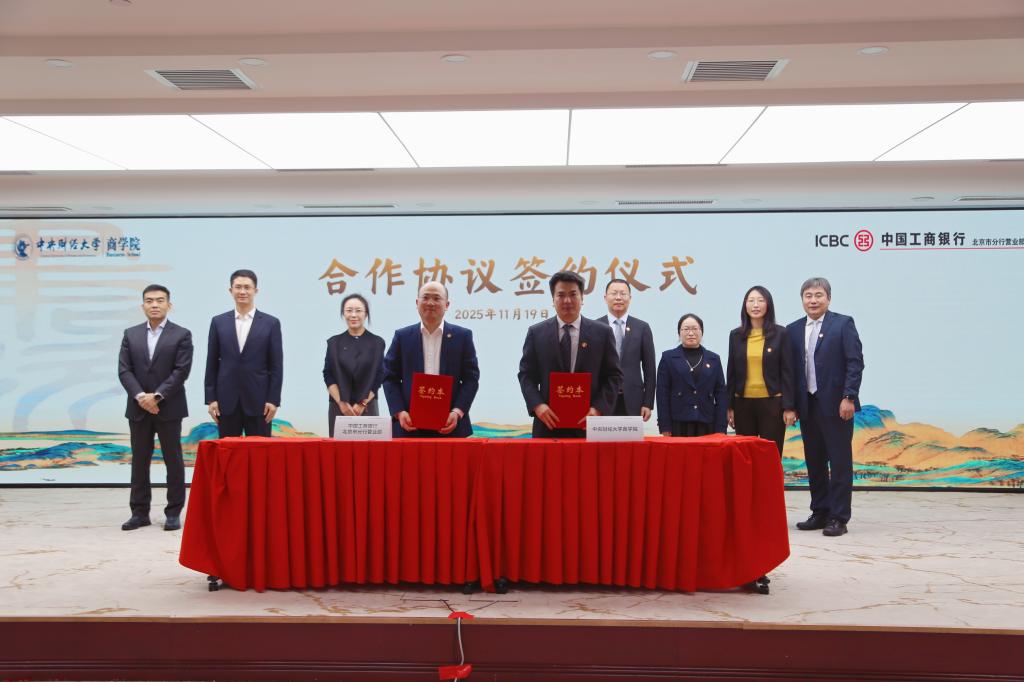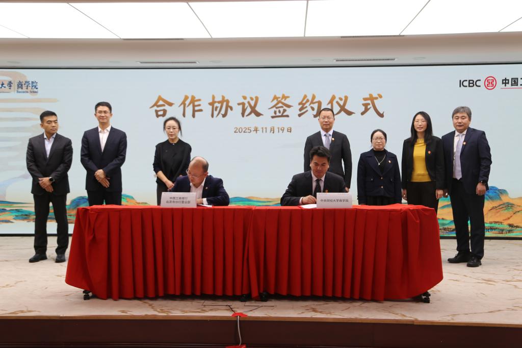 2025年11月19日下午,中央财经大学商学院与中国工商银行北京市分行营业部在工行北京分行隆重举行校企合作签约仪式。双方以“深化合作,共育人才”为共识,携手开启银校协同发展的新篇章。
