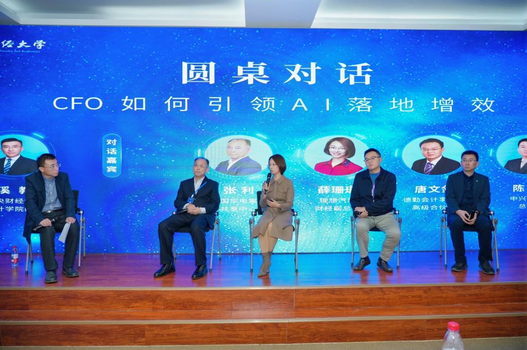 圆桌论坛环节,在会计学院院长吴溪教授主持下,张利、薛珊珊、唐文剑、陈虎四位嘉宾围绕“CFO如何引领AI落地增效”展开深度对话,就AI落地痛点难点、财务人员角色转型等关键问题交换意见,既有趋势预判也有实操指导,碰撞出精彩的思想火花。