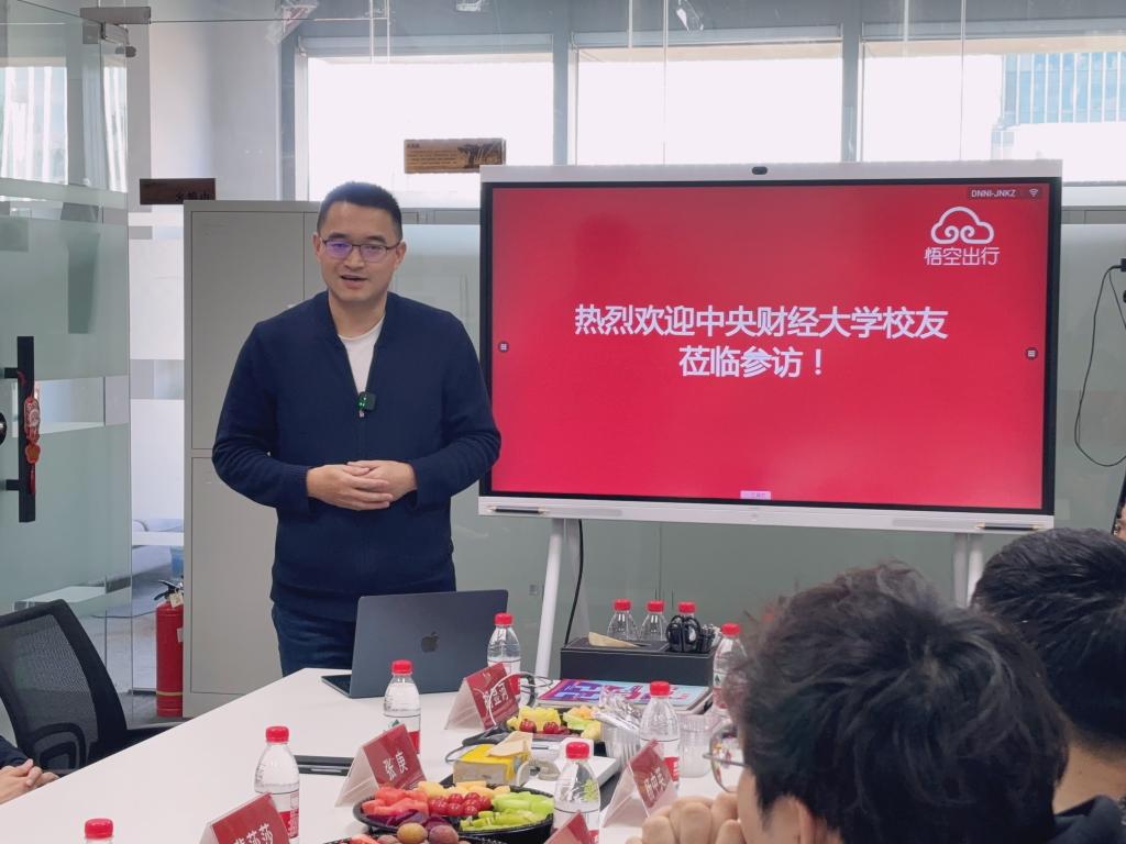 2025年3月29日上午,中央财经大学商学院校友会与中财商学院金融俱乐部携手,成功开展了一场别开生面的校友企业参访交流活动。活动现场,国际企业管理98级校友、悟空租车的创始人兼CEO胡显河,以 “悟空租车的发展创新与创业感悟”为主题发表演讲,为校友及在校同学呈上一场知识盛宴。他结合自身丰富的创业经历,分享了悟空租车在市场竞争中不断突破与创新的历程,以及创业途中的宝贵经验与深刻感悟。