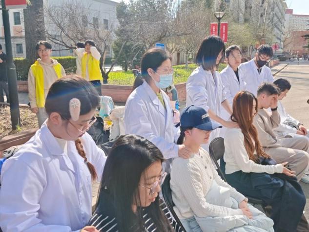 推拿区域排起了长队,专业志愿者通过手法疏通经络、调和气血,重点缓解了同学们久坐学习带来的肩颈劳损与精神紧张,让大家在忙碌的学习之余得到身心放松。