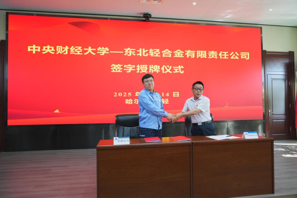 为深入学习贯彻党的二十大和二十届二中、三中全会精神,全面落实习近平总书记关于教育的重要论述和全国教育大会精神,依据学校关于一体化推进“百城万企”中国式现代化实践调研项目的通知要求,商学院师生团队于2025年7月14日赴东北轻合金有限责任公司(以下简称“东轻”),开展校企多方位合作实践活动。 此次活动旨在拓展实践育人空间和阵地,深化产教融合,活动涵盖校企合作签约、产教融合创新实践基地授牌、访企拓岗、支部联建共建及校企双向育人实践等内容。东轻党委书记、董事长张荣旺,党委副书记、总经理王强,党委副书记、工会主席李世伟,财务总监、我校2007级MBA校友杜朝彬等公司领导接待了商学院师生一行并参与了校企合作相关活动。